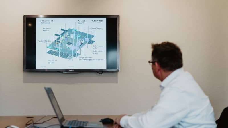Gründer Jörg Rauschenberger lädt zur Besichtigung des MorgenWerks. Hier wird zukunftsfähige modulare Technik entwickelt und erprobt.